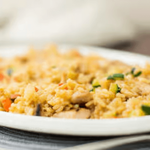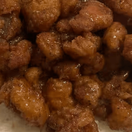Rice not included. Almonds, broccoli, crispy noodles, mandarins
