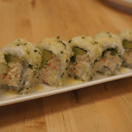 Smoked salmon, crab, cream cheese rolled crunch tempura crumbs